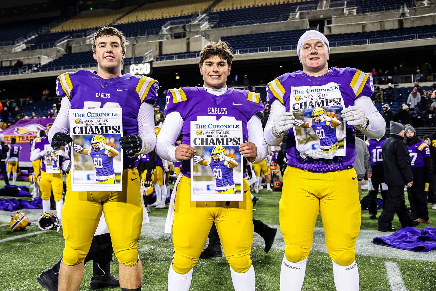 Avon exits Canton with a legacy cemented. The program now holds consecutive state championships for the first time. And in a fall where Avon volleyball and boys soccer also brought home championships, the school’s athletic momentum has never been stronger.