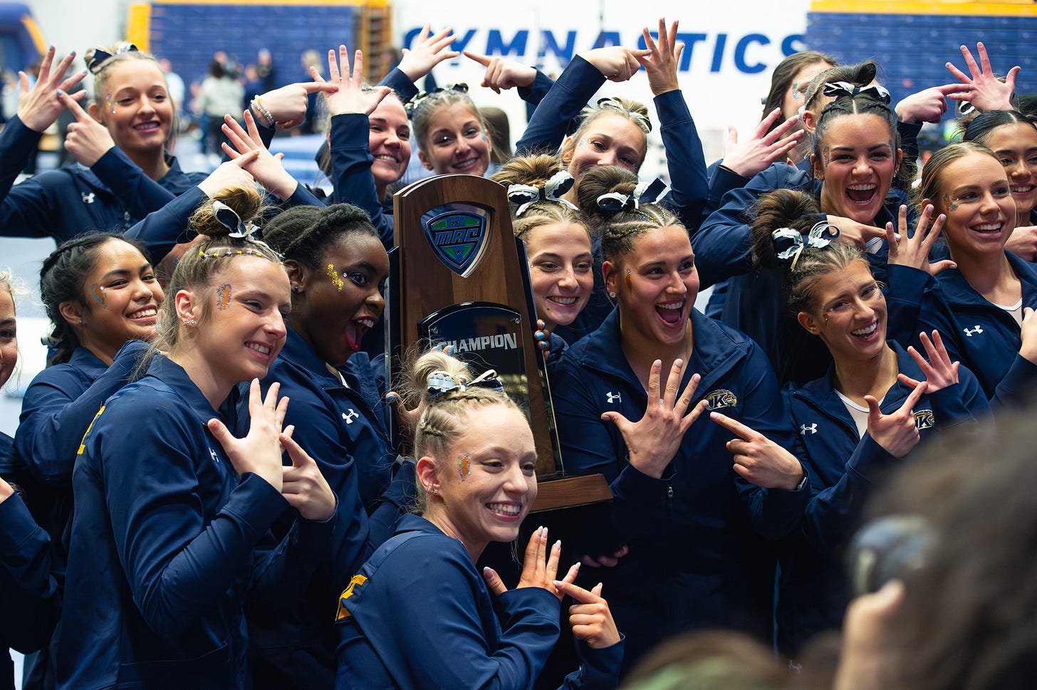 The Kent State Gymnastics team shared the Mid-American Conference regular season title with Ball State after a 197.100-195.750 senior day win over the Bowling Green Falcons. The Golden Flashes finished the regular season with a 5-1 conference record, tying with the Cardinals to share the title, their 2nd title in the past three seasons. In the win, the Golden Flashes’ 197.100 marked the third best score in program history, making it the fifth of the six highest scoring performances. The Flashes, who entered the meet ranked No. 24 in the country, won on all four events and have secured their spot in the upcoming NCAA Championships.